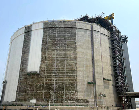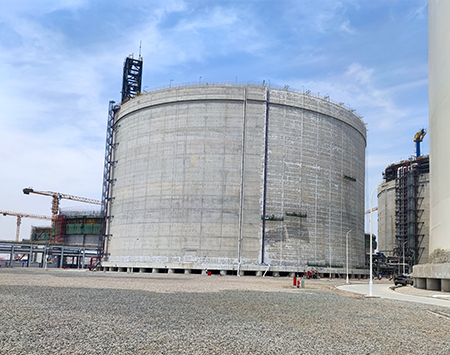 北燃天津南港LNG應(yīng)急儲(chǔ)備項(xiàng)目的薄膜型LNG儲(chǔ)罐是目前全球最大的陸上LNG薄膜罐,是為北京市提供安保用氣、加速京津冀一體化的重點(diǎn)項(xiàng)目,我司承攬此項(xiàng)目二、三階段共計(jì)六臺薄膜罐的防潮層施工工作